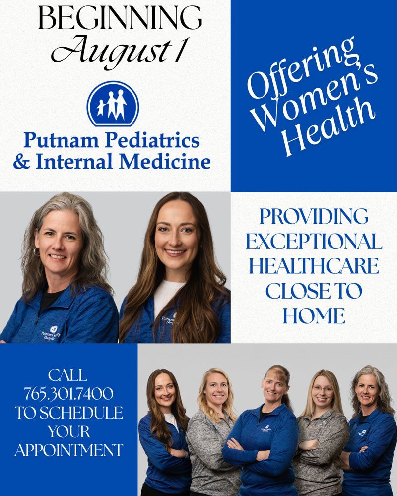 As of August 1, 2025, Putnam Women’s Health Services will now be offered in Putnam Pediatrics and Internal Medicine . Same great providers, better continuum of care.