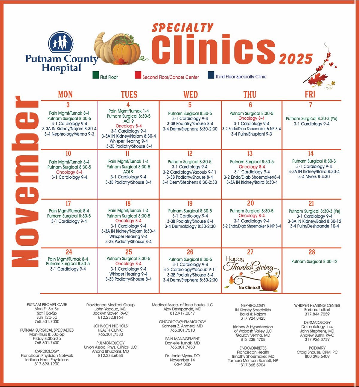 VISITING SPECIALIST CALENDAR